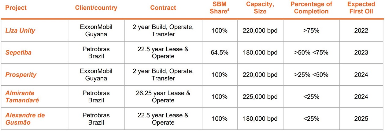- FPSO Almirante Tamandaré and FPSO Alexandre de Gusmão are added to the backlog based on the initially targeted SBM Offshore ownership share (55%) in the lease and operate contracts. The partial divestment to partners (45%), which remains subject to finalization of the shareholder agreement and various other approvals, was included in the Turnkey backlog.