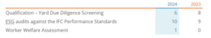 Yards will continue to undergo periodic human rights audits by third-party consultants. Additional ESG audits, linked to SBM Offshore’s project financing, have been conducted and assessed against IFC Performance Standards. These audits cover human rights and social issues, with any identified concerns integrated into SBM Offshore’s ongoing monitoring by its HSSE and Human Rights teams.