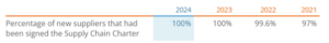 - 100% of suppliers qualified during the year have signed the supply chain charter[1];